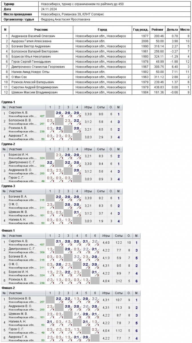 24.11.2024 турнир до 450