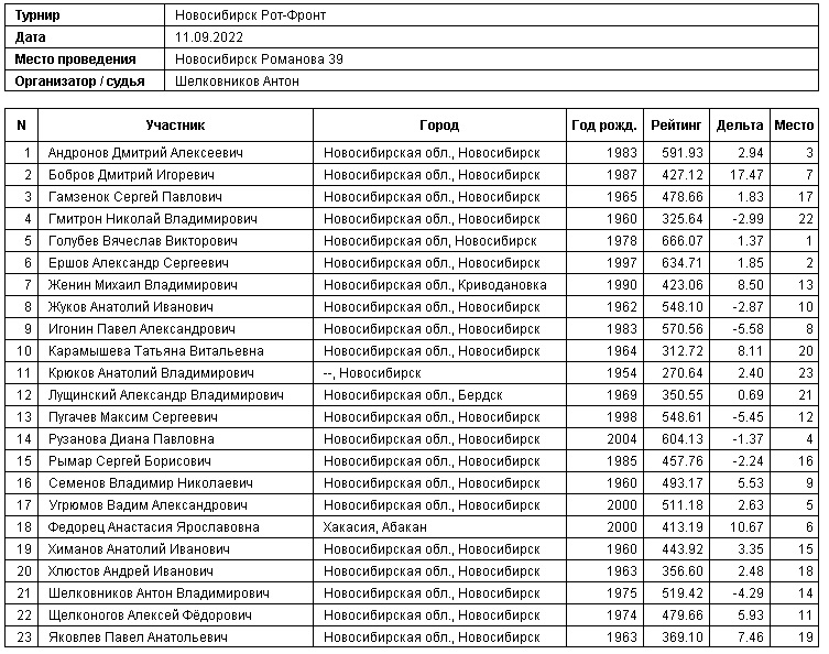 Результаты соревнований