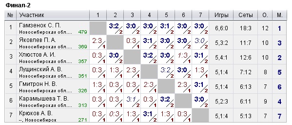 Таблицы любительских турниров