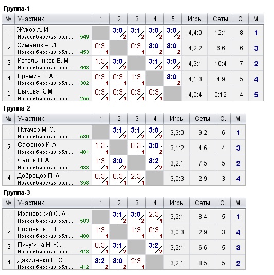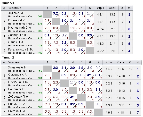 Таблицы любительских турниров
