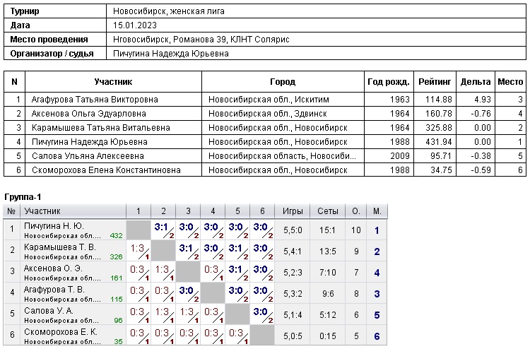 15.01.2023г., Открытые лиги, женская лига