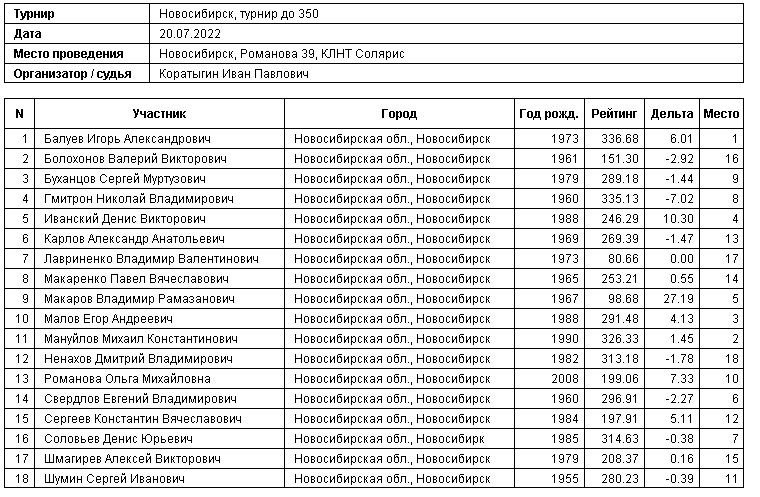 20.07.2022, Турнир до 350