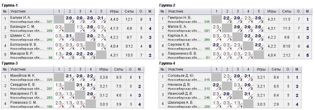 Таблицы любительских турниров