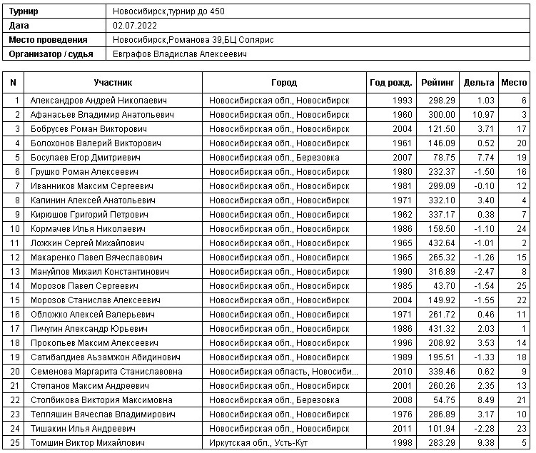 Турнир до 450, 02.07.2022