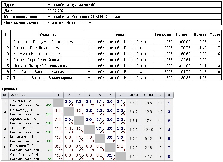 Турнир до 450, 09.07.2022